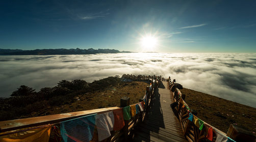 达瓦更扎景区位于四川省雅安市宝兴县硗碛藏族乡嘎日村境内,景区面积近50平方公里,云顶最高海拔3866米,属于邛崃山脉,地势北高南低,被誉为“亚洲通达最好的360°观景平台”。
