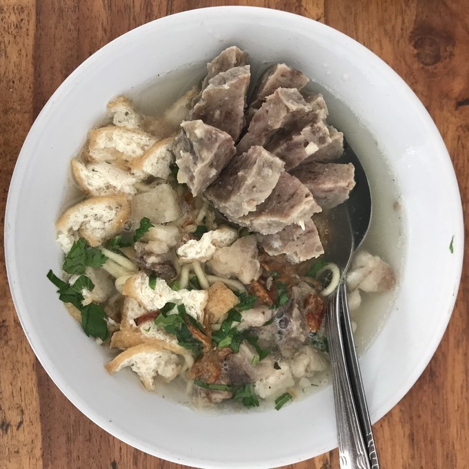 早上走路看日出包里可以背一些水和吃的,路上也有很多小店卖咖啡泡面什么的,不必担心会饿。村里很多吃饭的小店,我最爱的是路边摊Bakso,其实就是丸子汤,一份10-20k,里面有各种各样的丸子,炸麻花,炸馄饨等等,汤里加点辣椒酱还有类似蚝油的质地但是甜咸的不知道什么酱料,端着碗站在推车旁边吃,热乎乎的很得劲,吃完最好不要看他怎么洗碗。不过Malang的似乎更好吃。