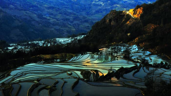 撒玛坝梯田看云海,普者黑看夕阳
