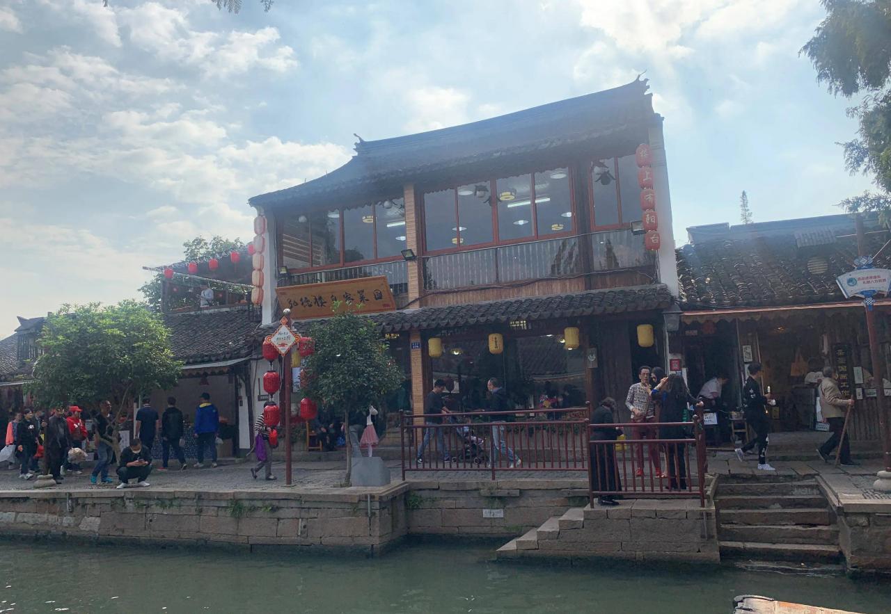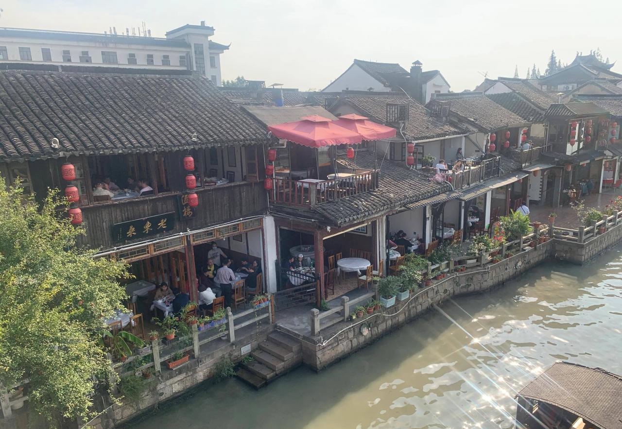 到古镇的时候已经是中午12点,找了一家临河而建的饭馆享用午餐。