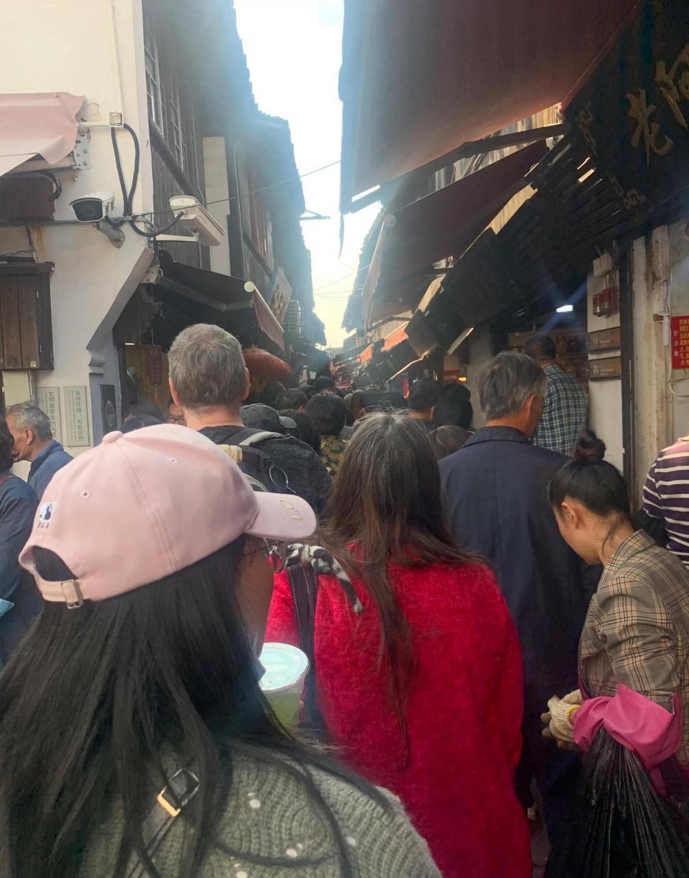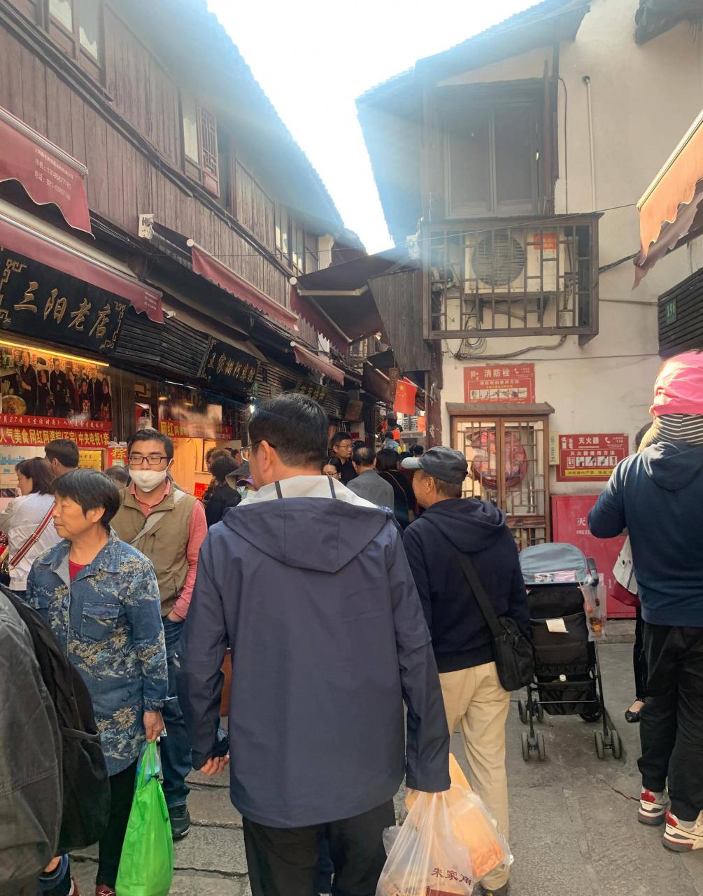 周末可以看到很多的游客前来游玩,购买朱家角的的特色小吃、品尝美食。