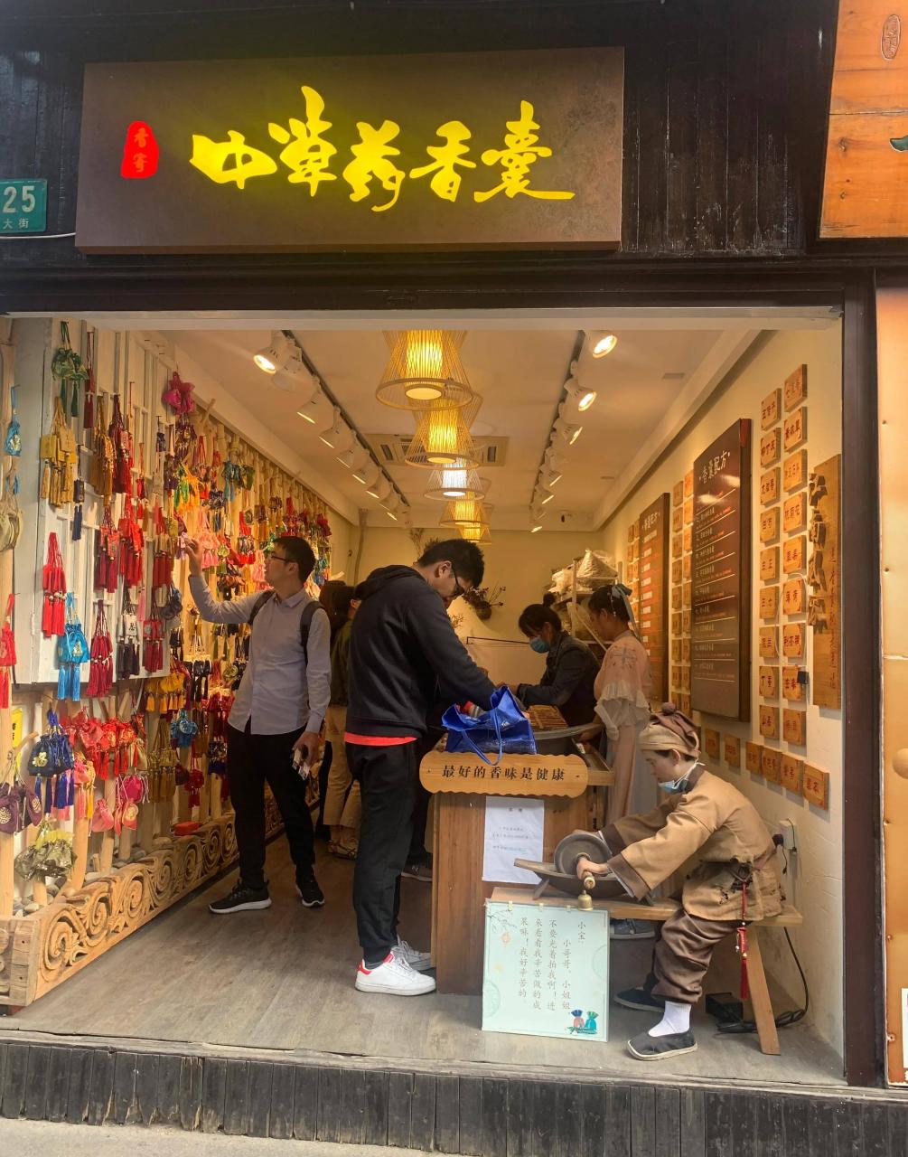 3.中草药香囊,一个小哥哥在那路勤勤恳恳的工作,他可是一个机器人。