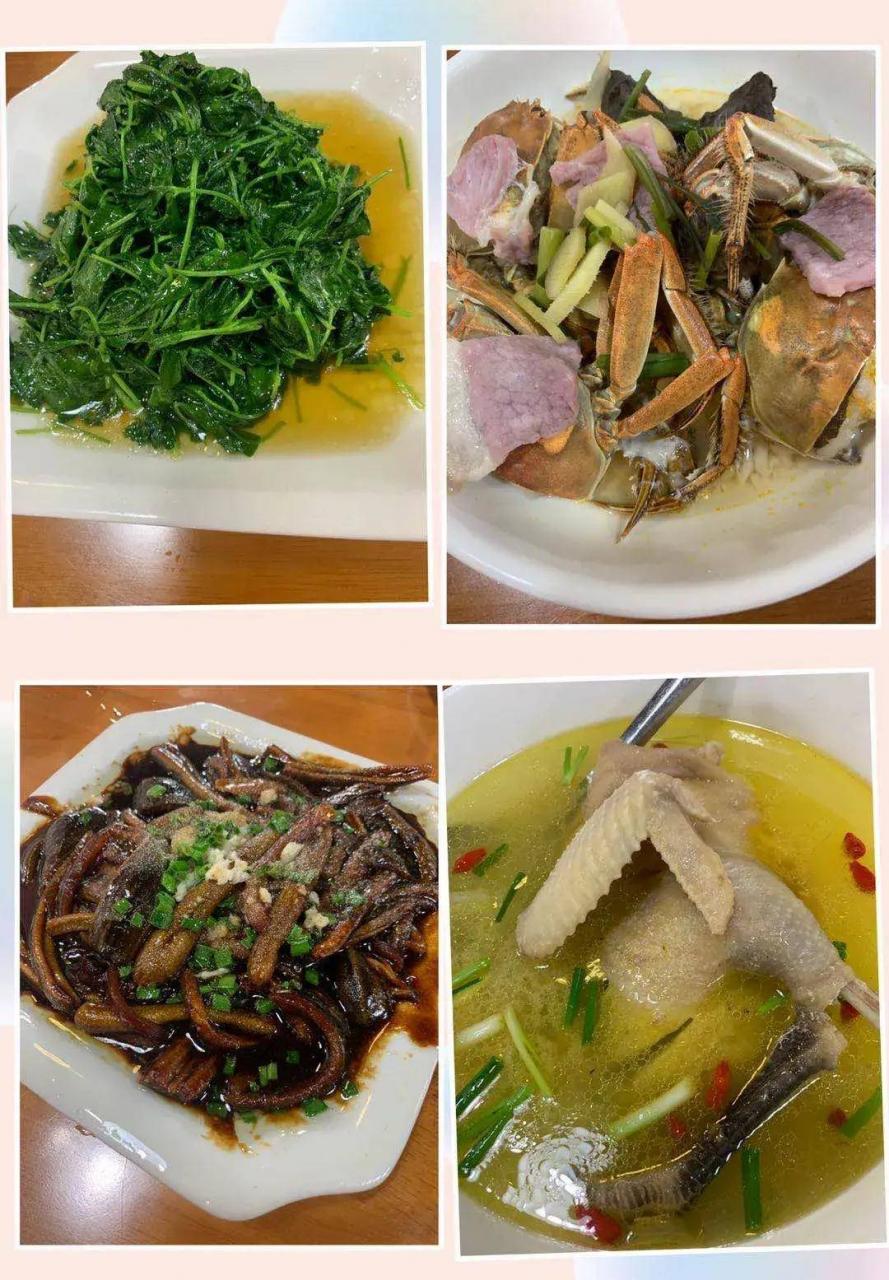 点了三菜一汤的家常菜:酒香草头、响油鳝丝、蒸蟹、老母鸡汤,味道很好。吃完午饭,开始了下午的小镇游玩。