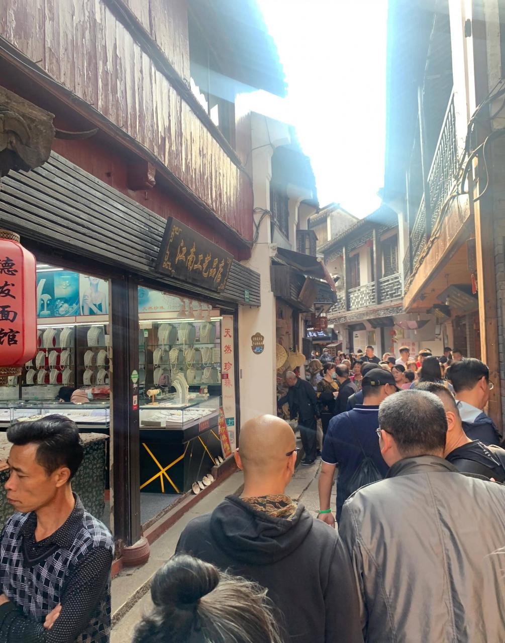 我是从北出入口进入古镇,沿着西井街-永安桥-东井街-放生桥-北大街-泰安桥-漕河街-大清邮局-城隍庙-廊桥-北大街-南出入口离开。