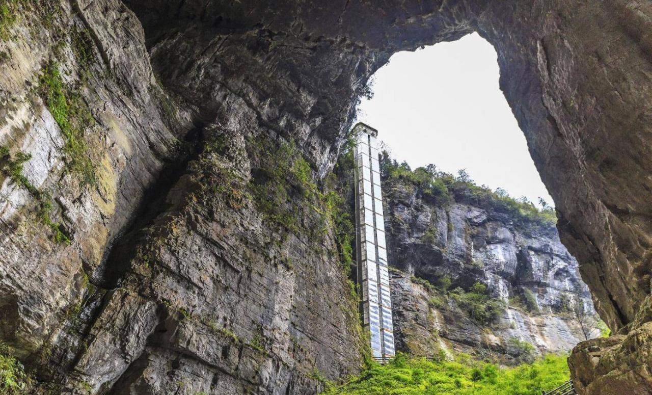 武隆天坑,是重庆热门的旅行地,在这里,人们不是向上走,而是要坐着电梯向下去。