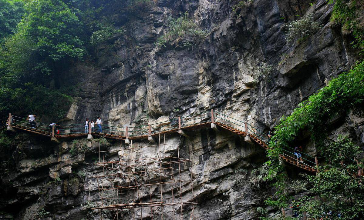 所以现在在这个天坑底部居住的,也都是当时麻风病患者的后代。他们最初被扔在这里自生自灭,但他们没有自己放弃自己,而是在这里开垦土地,种植庄稼,开始了自给自足的生活。而当时为看管这些病人不乱跑的守卫室,也在07年的时候被改建成了一所学校。虽然把它称为学校,其实这个学校不过是悬崖边一个不足两米的过道。学校里的老师只有一名,学生就是天坑底下居民的孩子们。