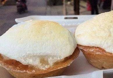 尝起来有点像蛋挞,带着的脆皮又比较硬,味道很不错,很适合游客品尝。