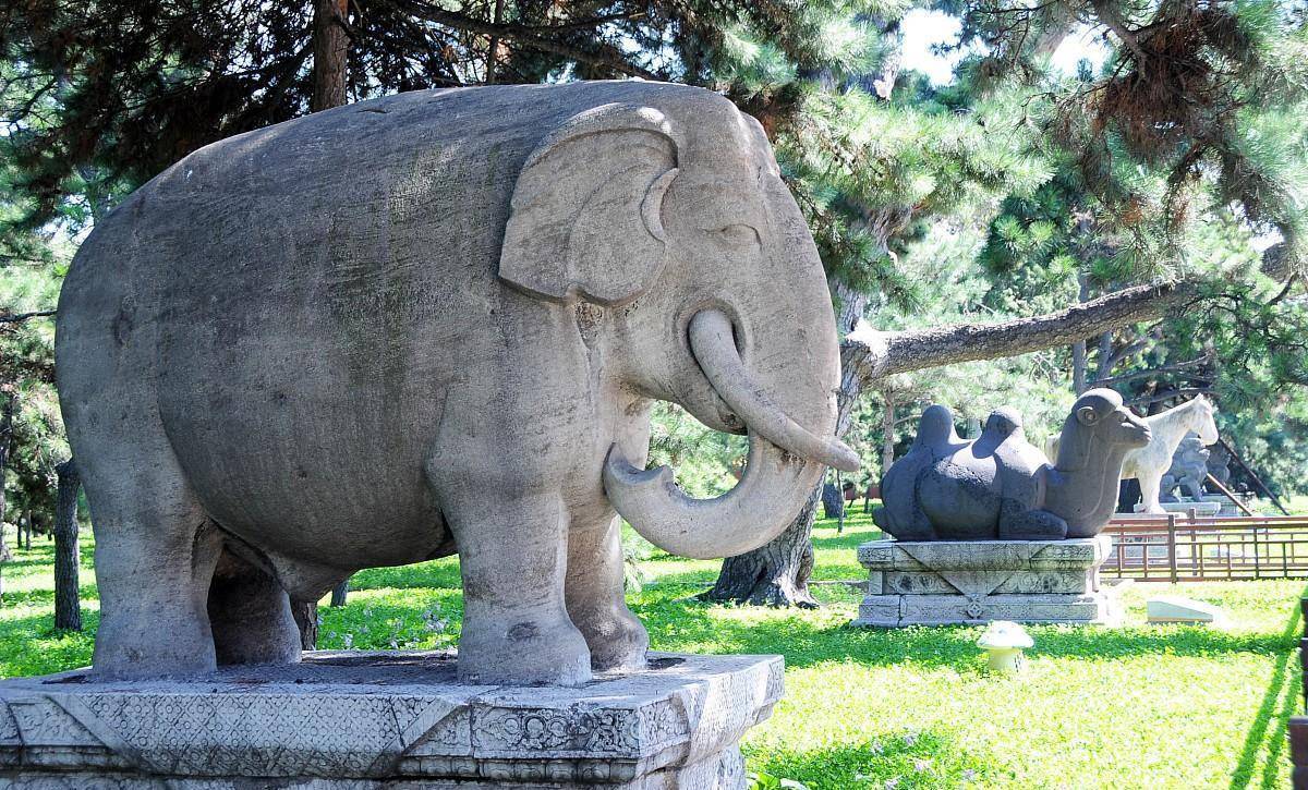 什么是石象生呢:就是那些石兽,包括石狮子一对,石獬豸(xiè zhì)一对,石麒麟一对,石马一对,石骆驼一对,石象一对,它们都立在神道的两侧,神道通往一座功德亭,走走这里,你会感受皇家的一种仪制,都特别有讲究的。