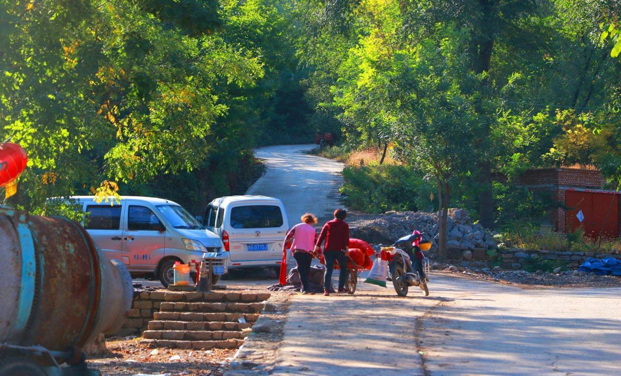 村里的路越往里走越窄,大车不好开着进去,小车可以。
