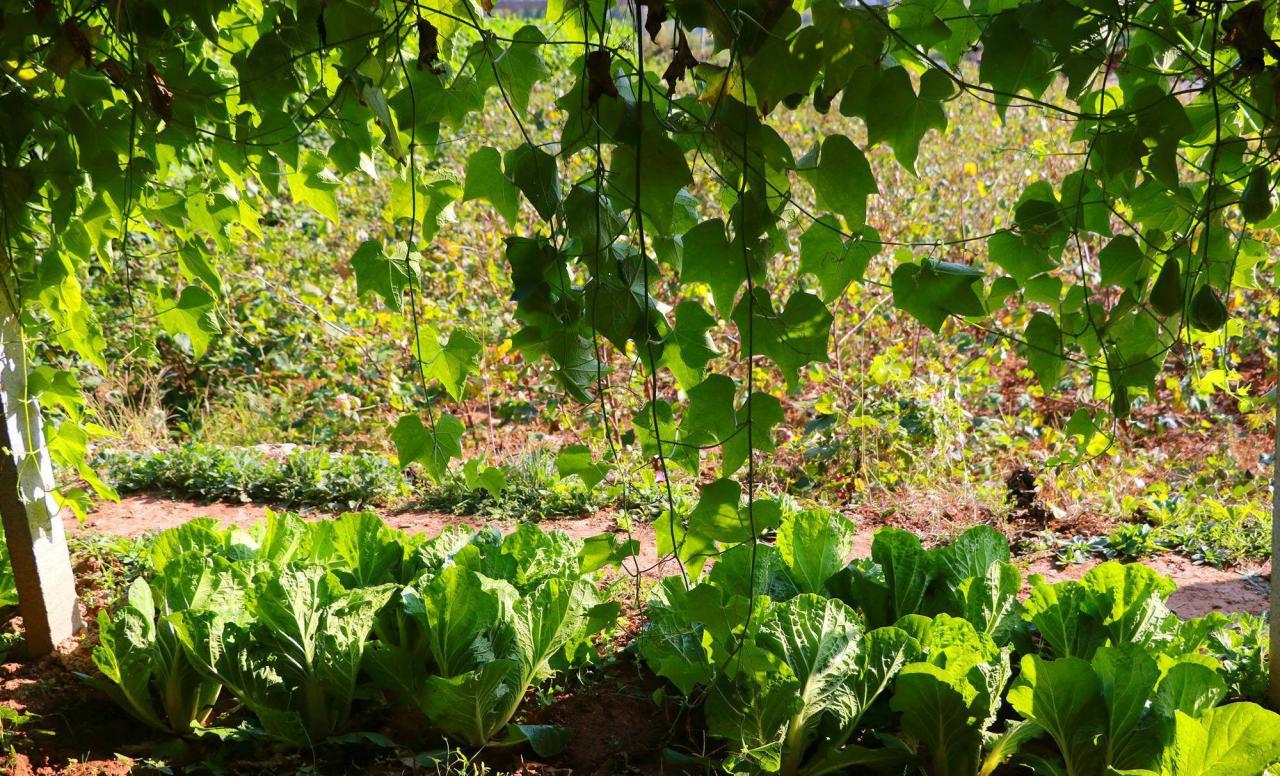 除了佛手瓜,还种植了白菜与萝卜等蔬菜,在村里有个这样的菜园很不错,自己想吃什么就种点什么。