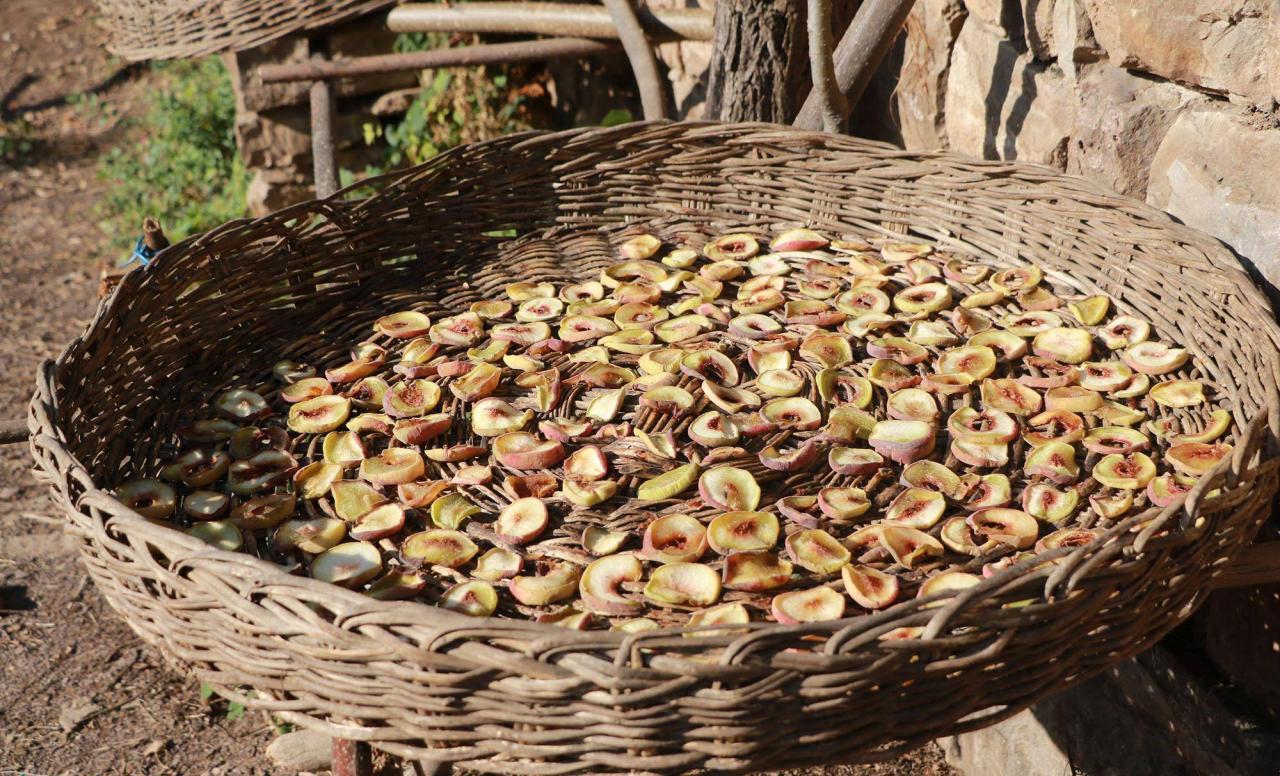一些桃子被乡亲们切了煮了晾晒起来,将来可以当果脯吃。