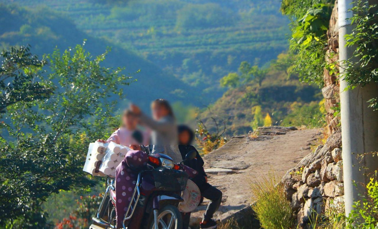 村里的乡亲很忙,在收获山上的山楂、桃子、地瓜等。