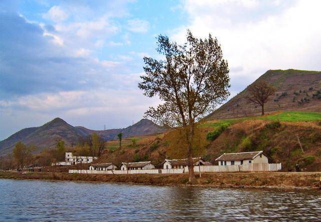 乘船沿着鸭绿江观看朝鲜百姓的生活,能看到什么样的场景呢?如果你在游船上,沿途会看到很多熟悉的景象。能见到田野里醒目的宣传标语,能见到沿岸的岗楼,能见到背着枪慢悠悠巡逻的士兵,能见到骑着自行车的女人……还能见到大片的农田。