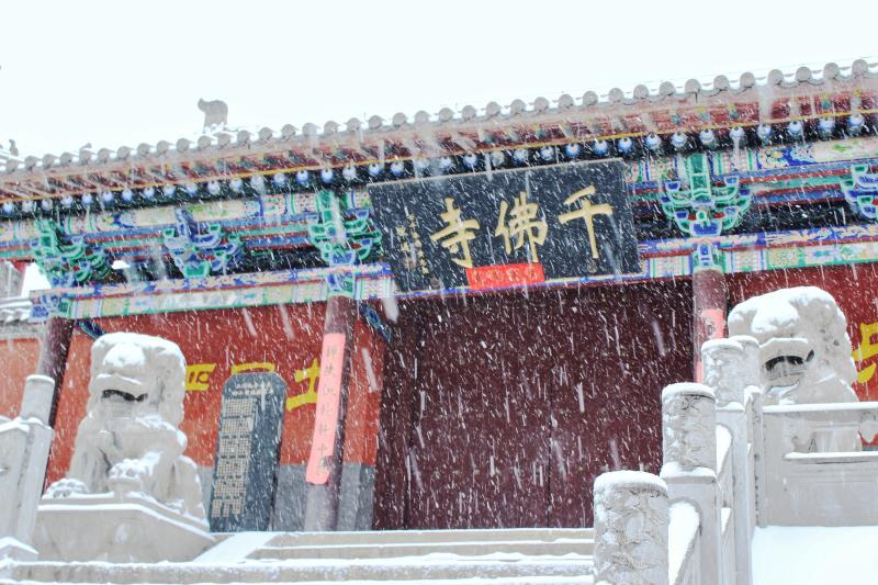 千佛寺,坐落于古交市区南端,两川相夹,背山临水,左有钟楼壮其威,右有井泉毓其利,面对寨亭,庙貌庄严古朴,距今约有千年历史。因共有石雕像千余尊,故名千佛寺。如今的千佛寺,明丽壮观,耸立在山腰上,红墙青瓦十分醒目,成为古交市的明显标帜,在矿区鳞次栉比的高楼丛中,依然闪烁着古老文化的光彩。