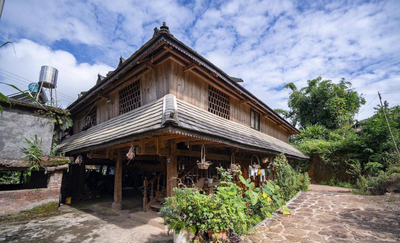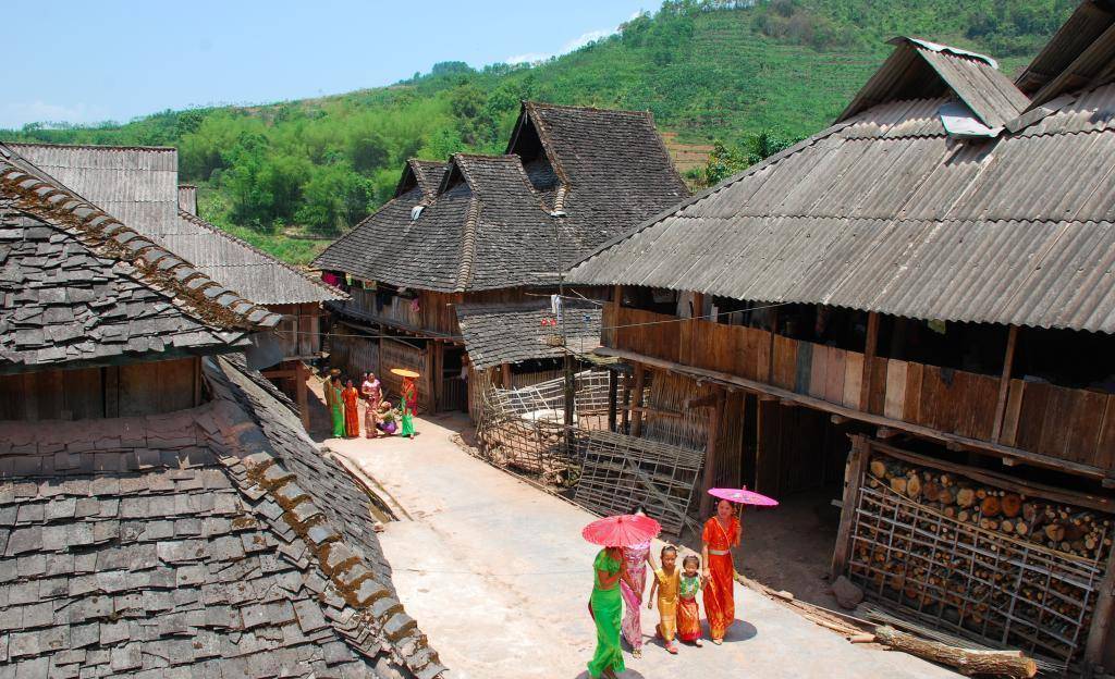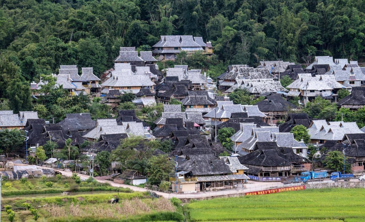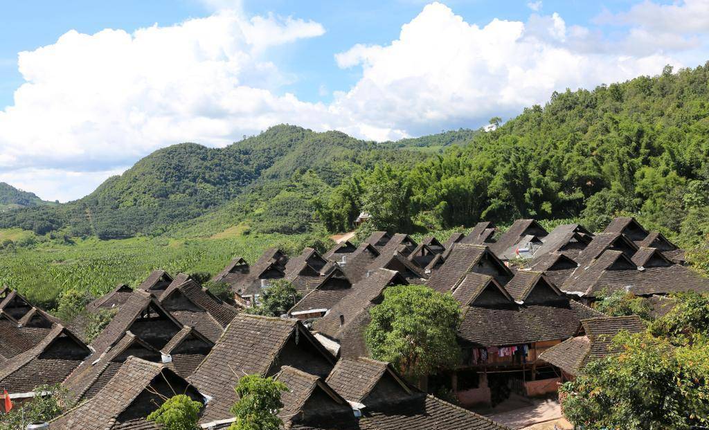 这个村子毗邻老挝,从清朝时期就存在,房顶都是黑色泥土做成的黑瓦。稻田、小桥、流水,高高翘起的屋檐,还有郁郁的丛林与古树,安逸而宁静。