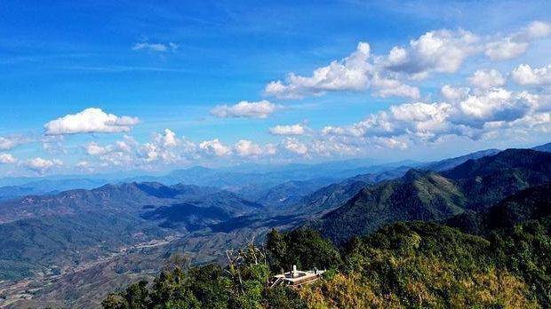 到达顶峰,便可一眼望尽三国风景。我国一侧森林茂密,飞瀑流溪点缀其间;越南一方草山连绵,牛羊散布;老挝一方则是山林与溪流交融,犹如一幅淡雅的水墨画。