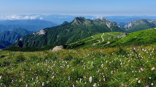驾车穿越秦岭,最辉煌和令人兴奋的要数抵达“秦岭顶”,那里也是有名的牛背梁自然保护区。弃车登山的话能欣赏到小瀑布以及高山草甸。登上路边纪念“6·8”特大洪灾的碑亭,向来处望去,但见崇山峻岭,那是母亲河-黄河哺育的土地;向南眺望,茫茫云海间同样层峦叠翠,山路盘旋,只不过是属于长江水系滋养的地方。一瞬间,千头万绪,内心涌动着对秦岭的无限崇敬和难以抑制的豪迈感。山顶的风凉意十足,一个穿着毛衣的男人摆了张简陋的桌子售森林门票,其他卖小吃和山货的人都穿着秋装,温度比西安城中至少低十几摄氏度。游客衣衫单薄,或转头回去,或继续前行。 翻过秦岭顶4公里处有卫生服务区,再行4公里,是西安与宁陕的分界处,这一段途中,温度在不断升高,而且也能看到阔叶林。牛背梁自然保护区立在路边的宣传牌,展示着生存在莽莽山林的羚牛、勺鸡、黑熊、血雉等的风采。距西安界4公里处,有一段景色秀美之地,且路旁有2处紧急停车区可泊车,树木葱茏,奇峰夹峙,碧水长流,令人流连忘返。
