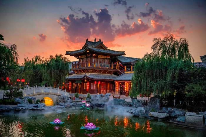 到了晚上逛完步行街穿过丽景门就可以继续往西走,隋唐公园这边的夜景真的超级壮观,之前央视的中秋晚会就在这边采景,对于一些现代人建造的仿古建筑,我真的觉得没有必要花那个钱再进行逛一圈,从隋唐洛阳城再往西就到了火山附近住过的地方。