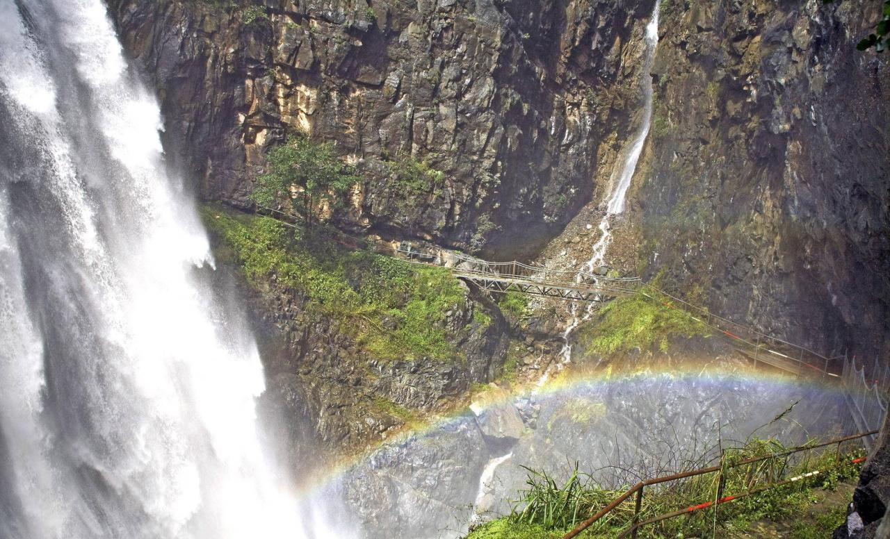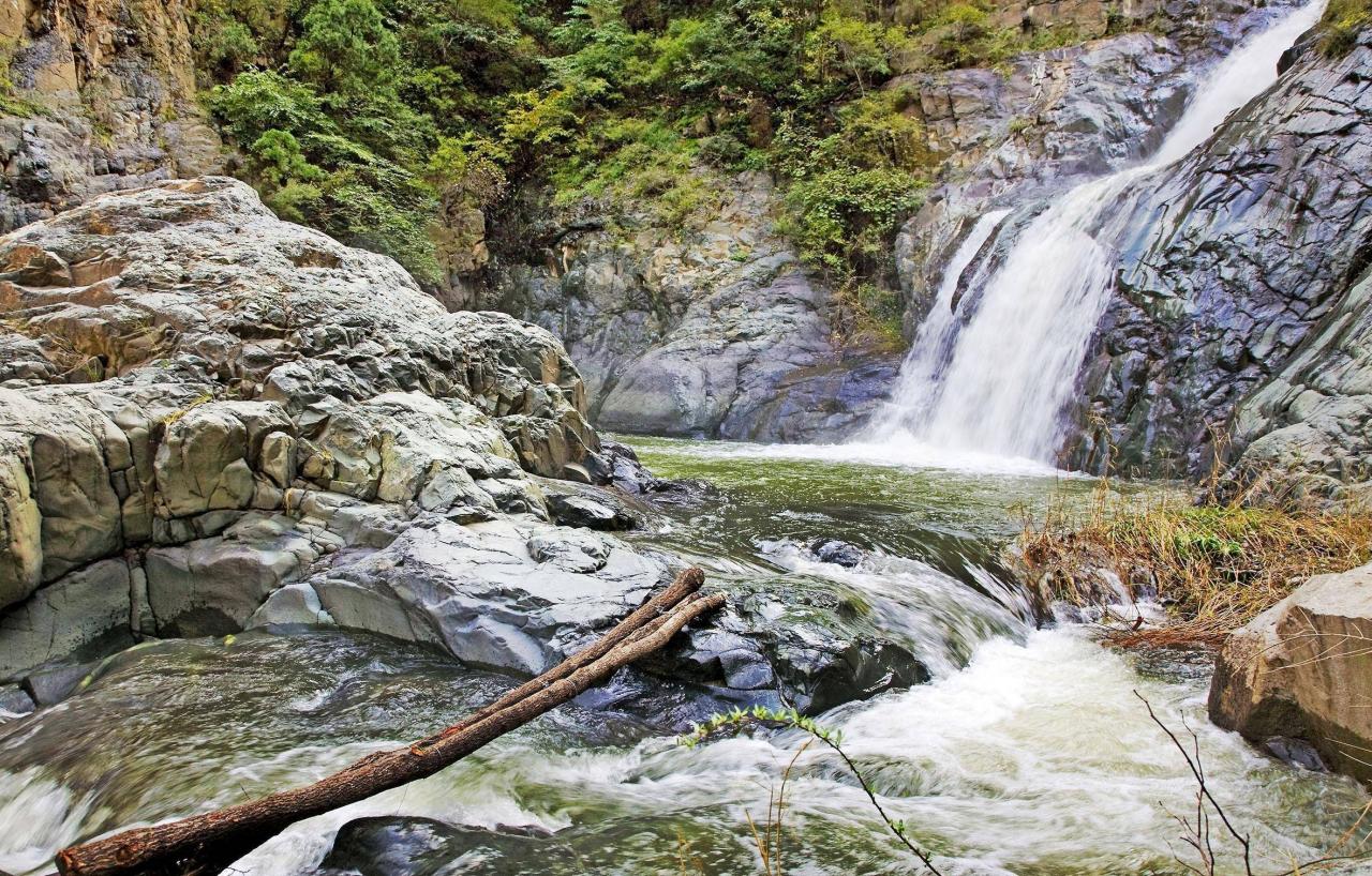 如图:倘若你站在左边的观景台上,便可看到背面百余米深的又一道惊险深谷和落差百米的“千尺瀑”,亲身领略到望仙大峡谷的无限魅力。