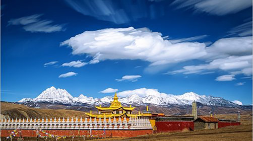 站在冷谷寺的任何位置,抬头都可以看见伟岸的格聂主峰,极度澄明的空气使雪峰变得触手可及,近距离的凝视带来令人窒息的美感。格聂神山山体和缓,形状似佛,主峰左右有四峰拱卫,两旁的群峰次第排列,如众星捧月、众神护佛,尉为壮观。终年白雪皑皑的山巅,冰川的纹理仿佛新娘的婚纱,婚纱下摆处是裸露的山岩,刀削一般的硬朗线条与冰川的流动纹理对比鲜明。岩石下面渐渐出现植被,渐渐山林丰满,山林脚下是冰川融水形成的溪流,植被随海拔立体演变,如此生动鲜明。