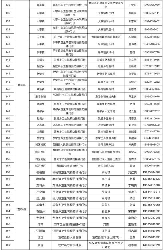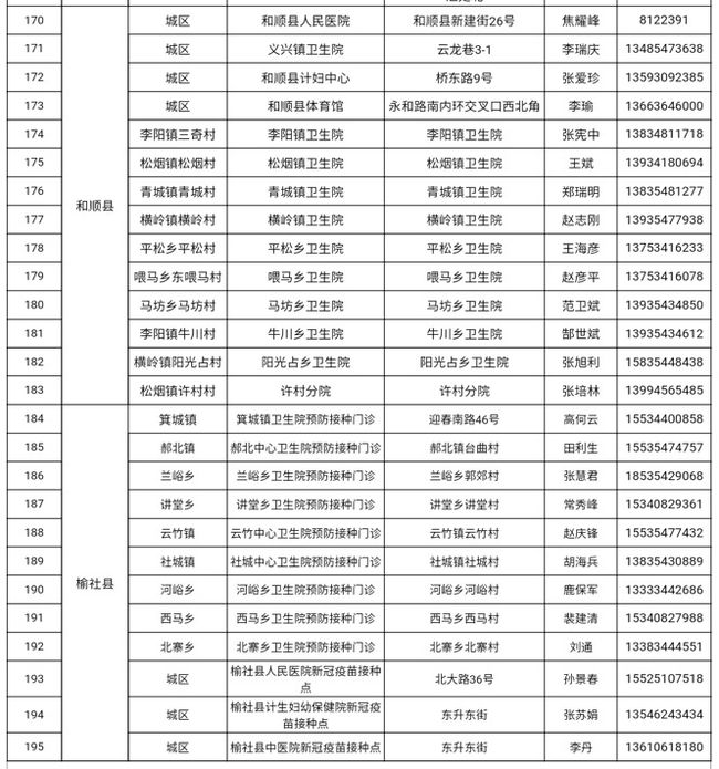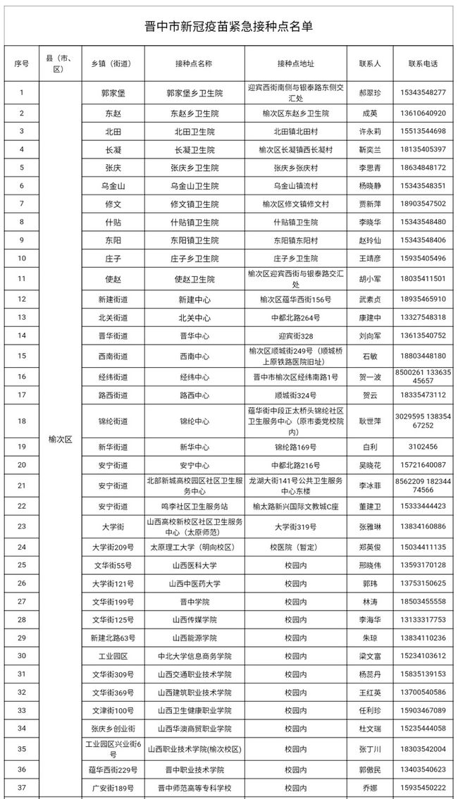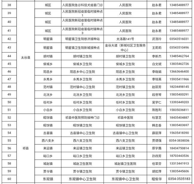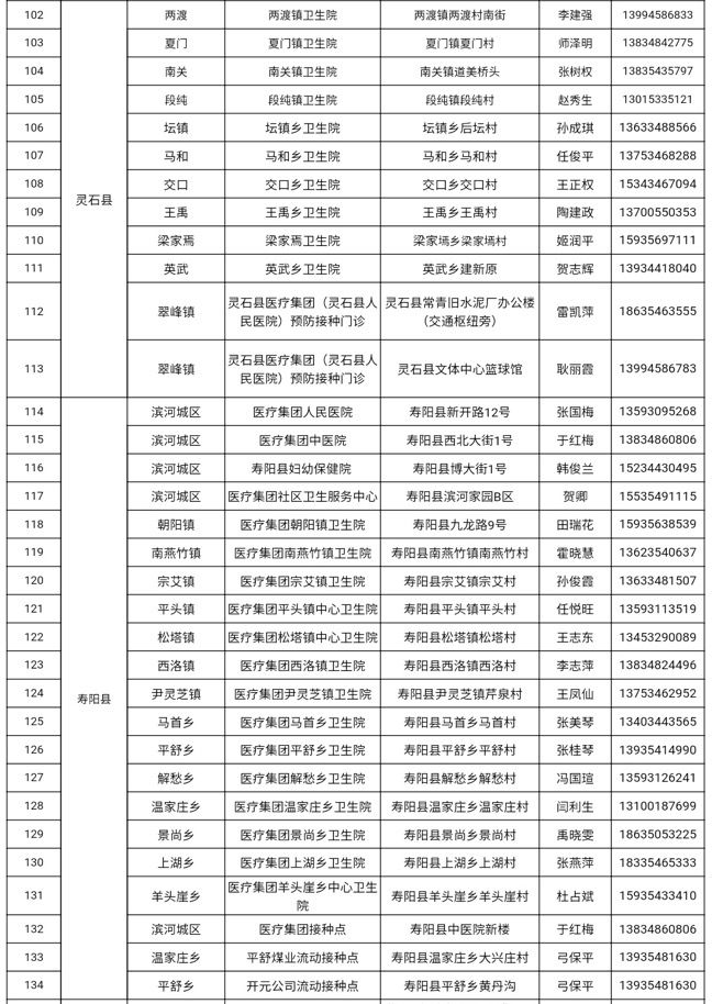 备注:寿阳县另有10辆移动接种车;昔阳县暂设23个巡回接种点(地点依需求确定)