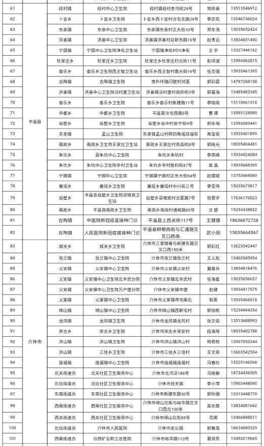 临汾市215个新冠疫苗接种点地址电话及注意事项