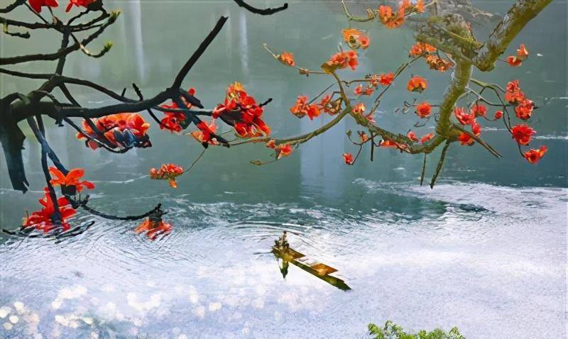 春天一到,遍野的木棉花便将江水染成绯红色,红艳艳的,仿佛是天上的仙人打翻了红酒佳酿,落入了人间,成为红水河。