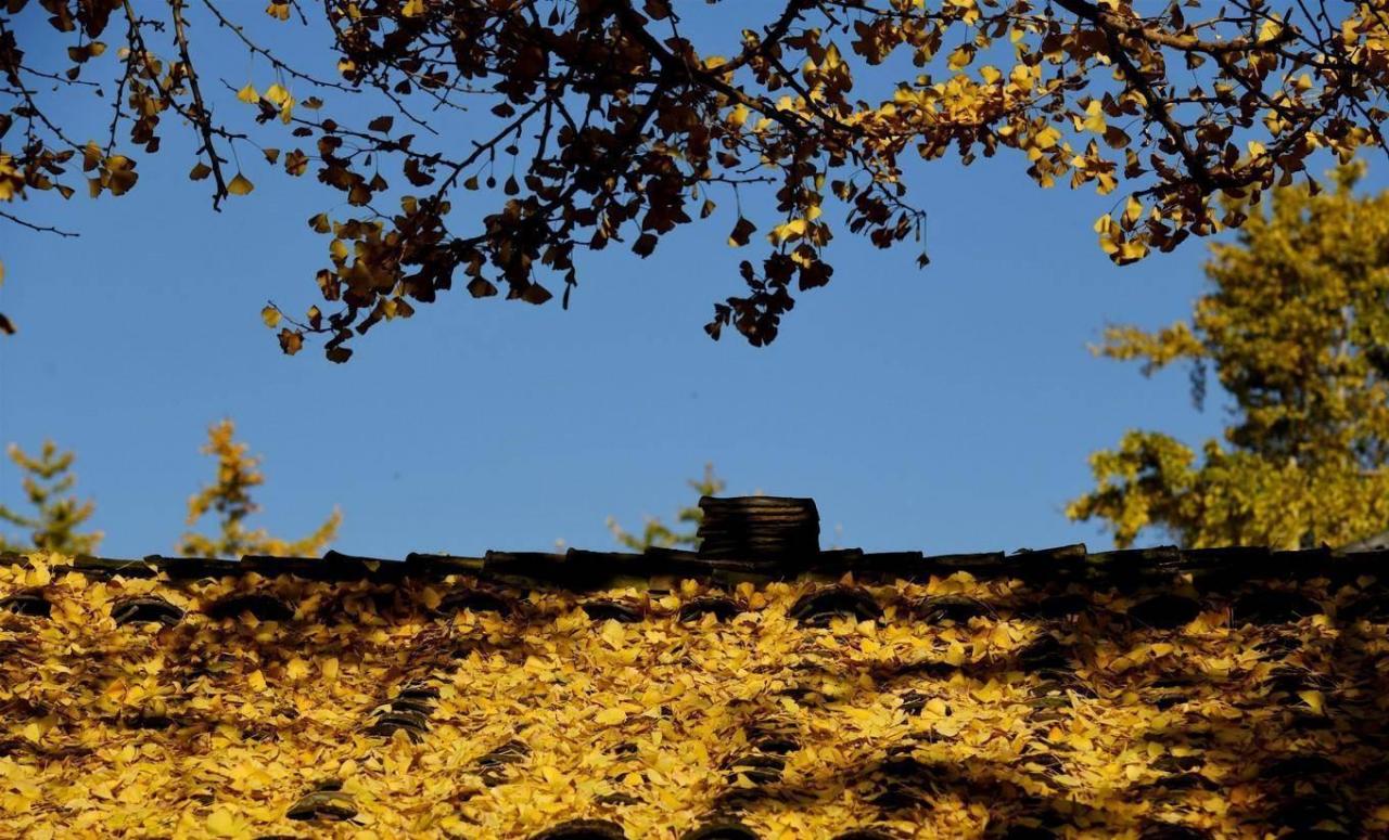 若论美中之最美,还是清晨和黄昏。那时,村子里一片宁静,阳光透过树叶缝隙投下美丽的斑驳光影,整个村庄都掩映在一片金黄之中。小路上、墙头上、瓦房上、水沟边、菜地里都是银杏树上泛出的金黄色。