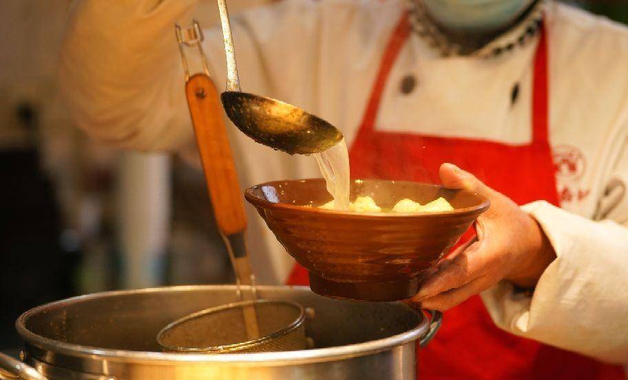 在秦淮河畔,各种各样的的美食店铺林立于街道上。南京鸭血粉丝汤名闻遐迩,鸭血粉丝汤的招牌随处可见。
