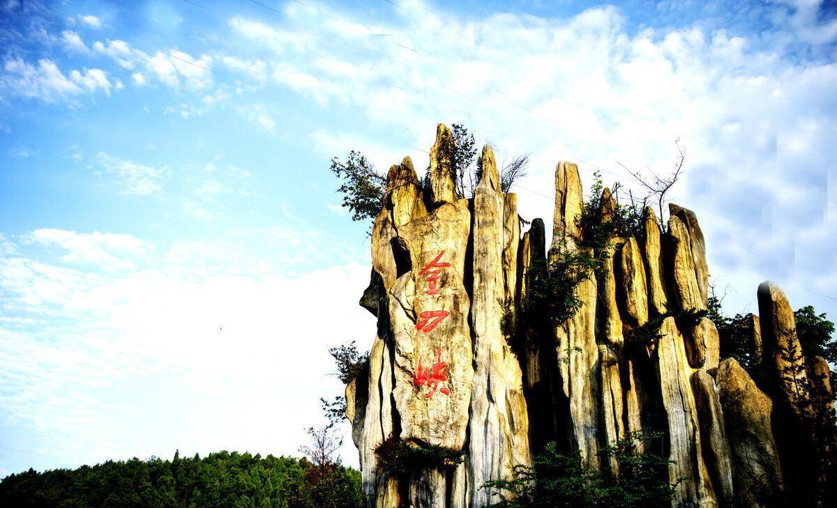 金刀峡长约9千米,分上下两段。上段由于喀斯特地质作用,地面切过强烈金刀神功般形成了独特的峡谷幽壑,石壁如削,两山岈合,垂直高度超过百米,上有古藤倒挂,下有潺潺流水;下段由于流水侵蚀的作用,有洞穴群提高潭檀相连飞泉淏布层层叠叠,古钟乳、石笋、石柱更是千姿百态,堪称全国最长的峡谷十里仿古栈道。金刀峡的主要景点有滩口牌坊、宋代塔坪寺、偏岩古镇、游静观花园胜天湖等。