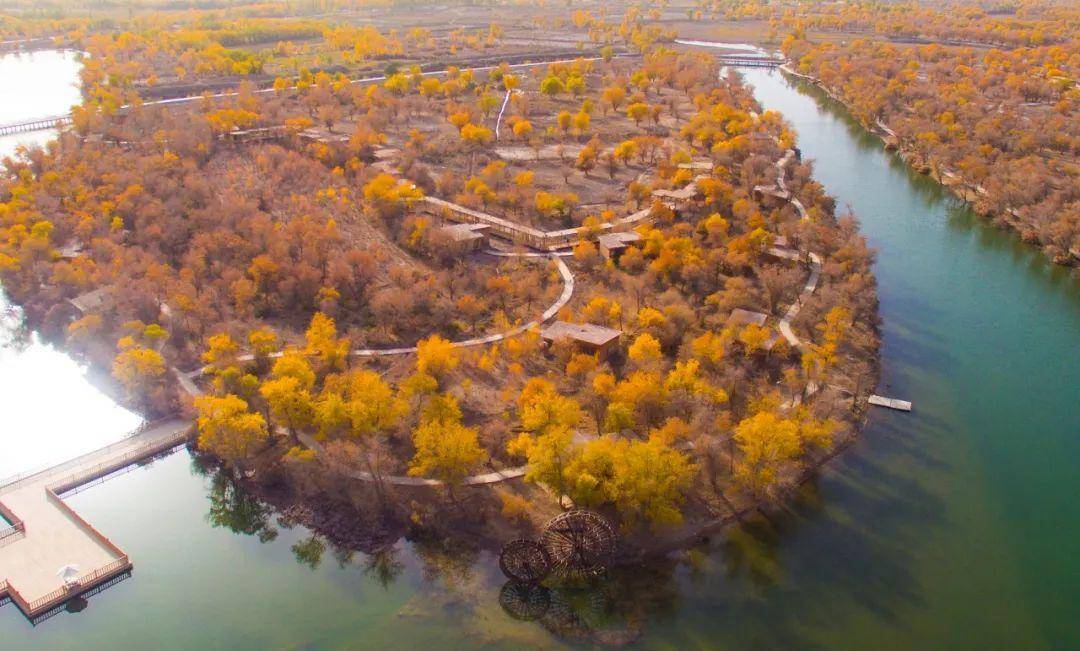 胡杨海景观区的金色胡杨岛,是316万亩胡杨林的缩影和窗口。每年深秋,一片金黄,平静的湖水倒影着金黄的胡杨,让游客如痴如醉。