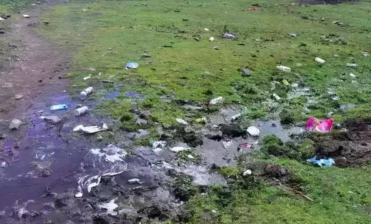 同样有驴友在去年保玉则旅行途中,曾拍到过一张照片。从神峰间隙中流出的涓涓山泉,到了游人如织的草甸后,开始混杂着易拉罐、零食袋,以及一些不明物。曾经清澈见底的水源,似乎变成了污黑不堪的“地沟水”。