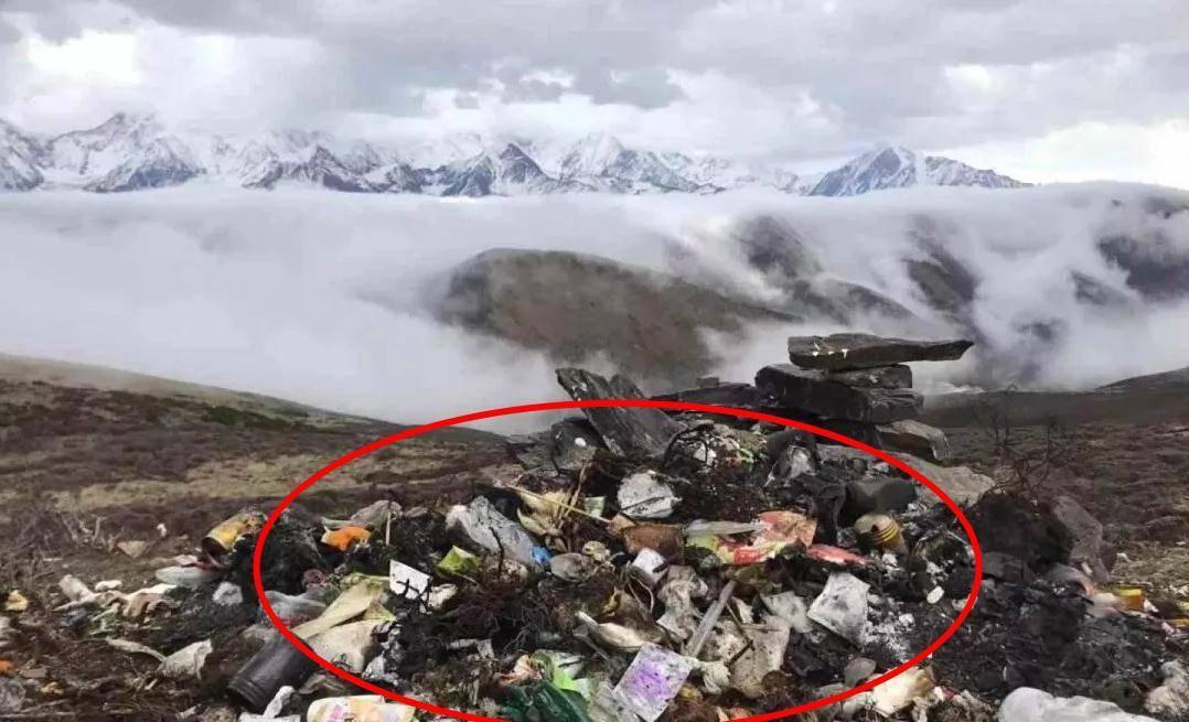 巴郎山垭口关闭前,驴友拍到过不少“风光无比”的照片。巴郎山山腰处,布满了垃圾。遍地的垃圾甚至到了“乱花渐欲迷人眼”的地步,仿佛站在垃圾堆中欣赏雪山。嗅觉灵敏的游客,或许还能在缥缈的云海中,感受到一丝酸臭味。