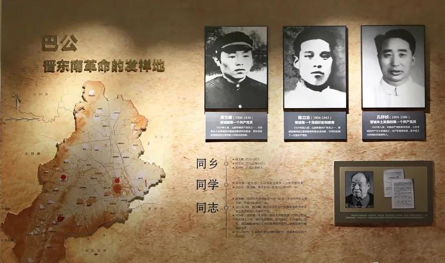 晋城“红色三杰”纪念馆是为了纪念从巴公走出的彪炳晋城党史的“三个第一”:晋城籍第一个共产党员周玉麟、晋城第一个党组织创建者陈立志、晋城本土发展的第一个共产党员孔祥桢。纪念馆位于泽州县巴公镇山耳东村,这里是“红色三杰”之一陈立志的故乡。