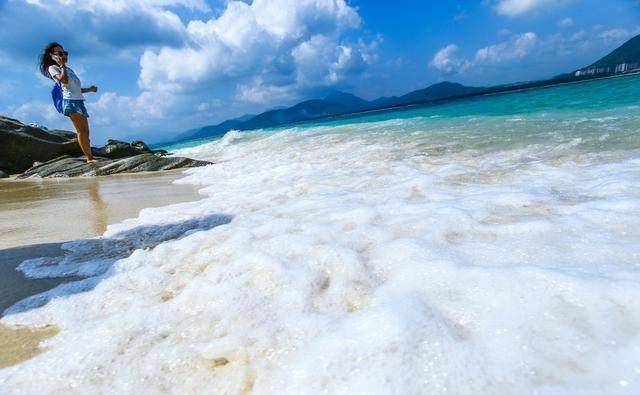 万宁的美,首先在于它的海滩,深邃幽蓝的海水和金黄细软的沙滩相衬,显得魅力十足,但在海滩上却是干干净净,鲜少有像其他沙滩一样密密麻麻的人出现,零星的几个人一起玩水玩沙或是静静地看看一望无际的大海,都是很棒的体验。