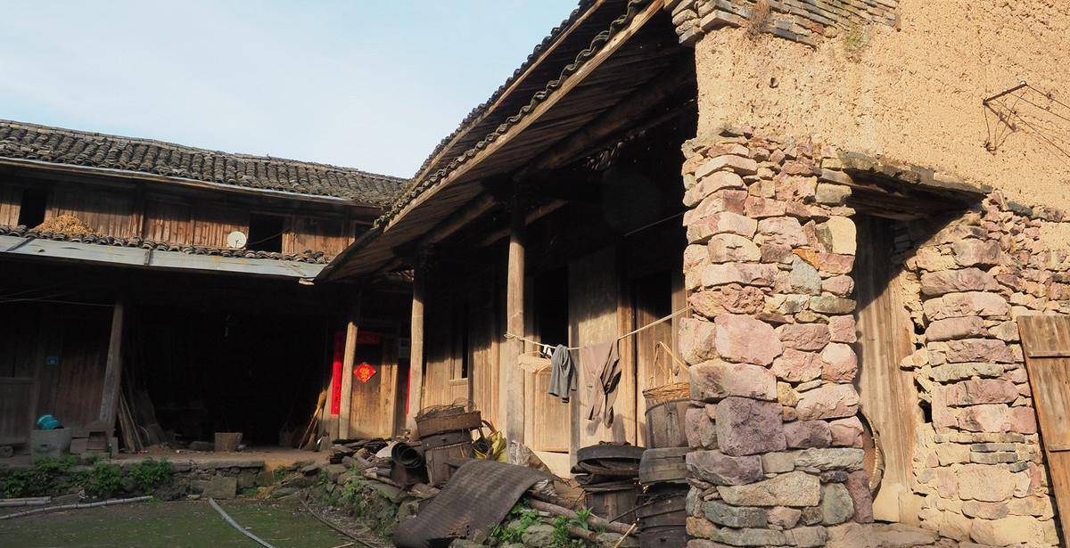 全村建筑都是以土墙为主,门板为门面,青瓦为顶,有小平层,也有高楼和四合院。土墙都是一层一层结实夯起来的,在夯墙时先把墙板架正,保持土墙重心平衡,架正之后往里倒土,再用墙杵夯实,据称一尺高的土墙需要经过三到四次夯实过程。在土墙夯到一定高度时,适当的晾晒保持土墙的承重,还要负责土墙拍板,保证土墙的牢固性。