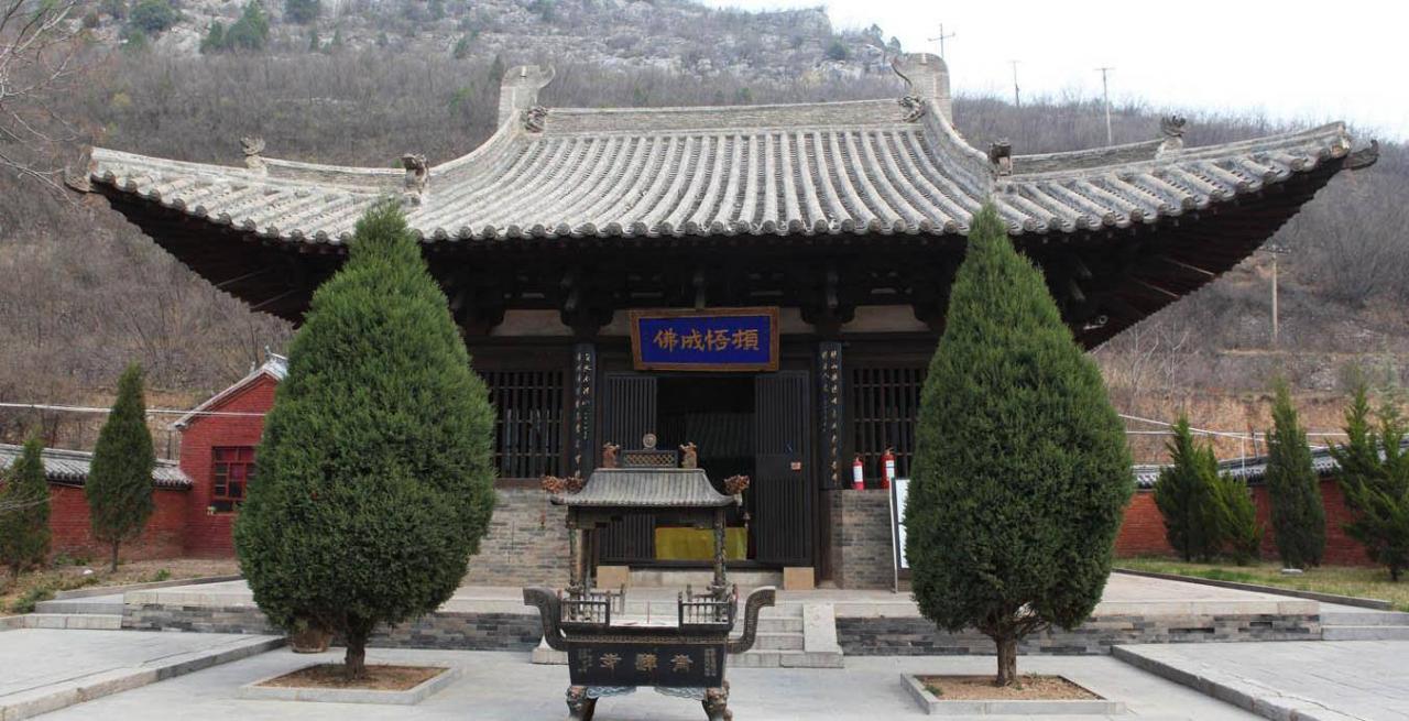 南殿还有一块《硖石寺大隋远法师遗迹记》石碑,是唐朝时创立的,凿刻的是佛殿图,碑刻中的弥勒佛正在莲台上讲解经文,身后就是座寺庙,刻画了唐代完整的寺院轮廓,从山门、围廊、到讲坛、佛殿等等应有具有,它是中国古代建筑史上已经发现的建筑文物里面十分罕见的实物资料,为研究唐代的建筑结构和寺庙布局提供了史实资料。