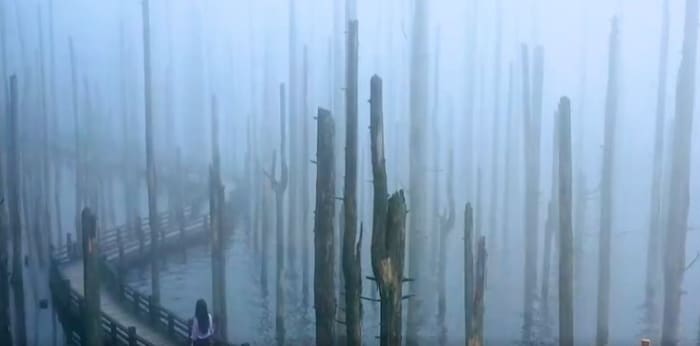 女生们一定要去打卡月亮湖,走在木栈道上,穿过和浸在水里的水木杉,非常适合拍照,分分钟出片。你还能够搭上一次高山小火车,祈祷一年都顺顺利利的。