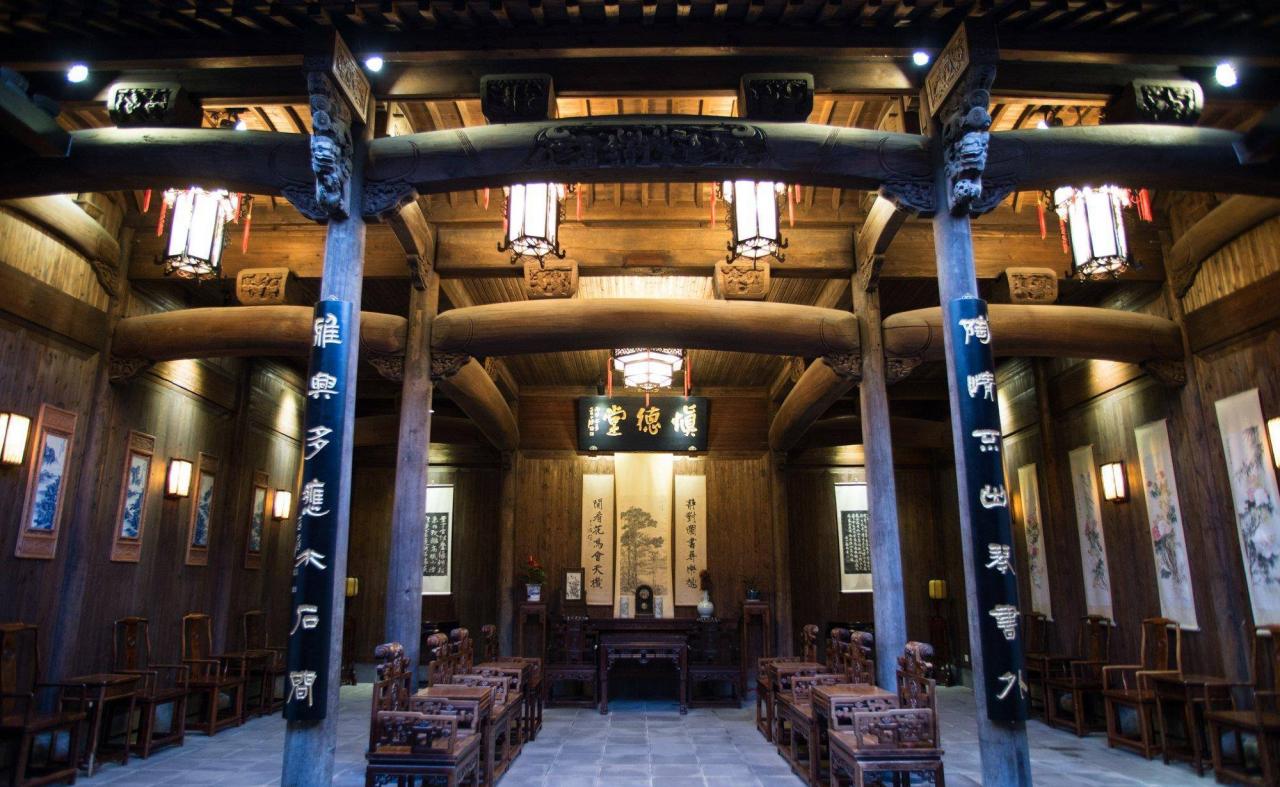 走进大堂,大厅中央悬挂着一块“申德堂”牌匾。一根粗壮的木柱和横梁交织在一起,上面还有一些精美的木雕。这是典型的徽州大堂风格,虽然没有任何法式风格。但浓郁的徽派风格和古色古香的装饰,不禁让人陶醉。