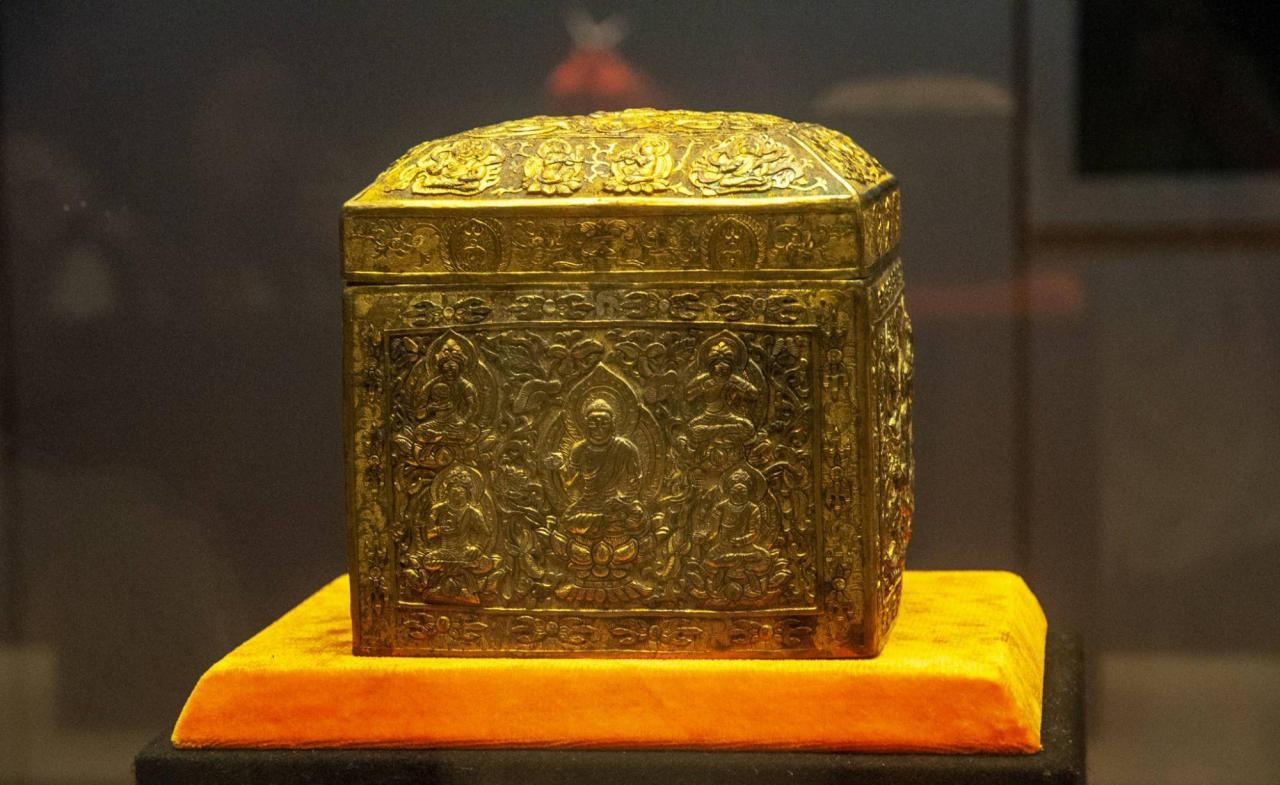 这里的宝物数量是世界上最多的。法门寺地宫是当今发现的最大的佛教寺庙。在塔下的地宫中,这里出土了2000多件唐代国宝,释迦牟尼佛指骨舍利、八重宝信、铜佛等佛教无上珍宝均出土于此。