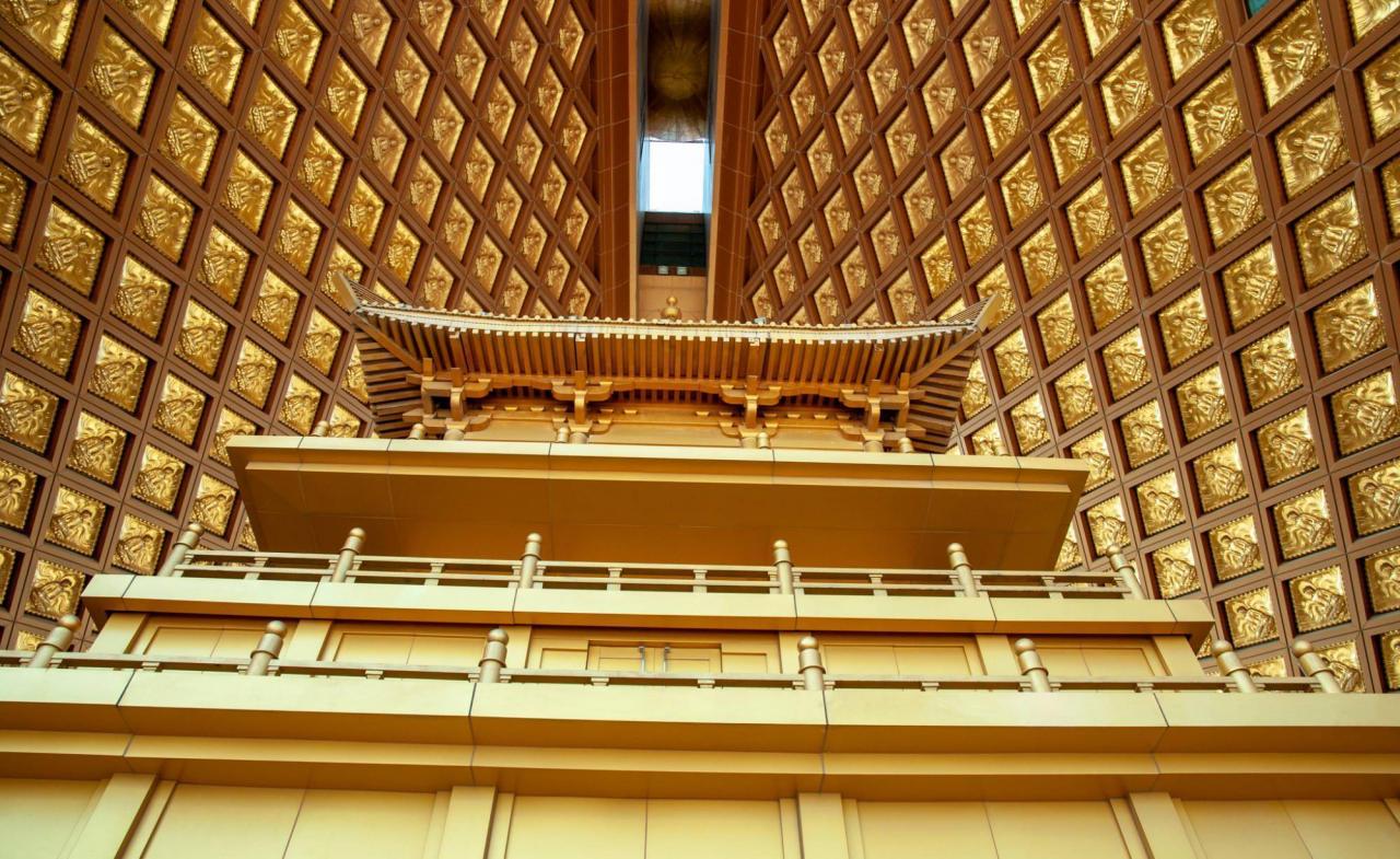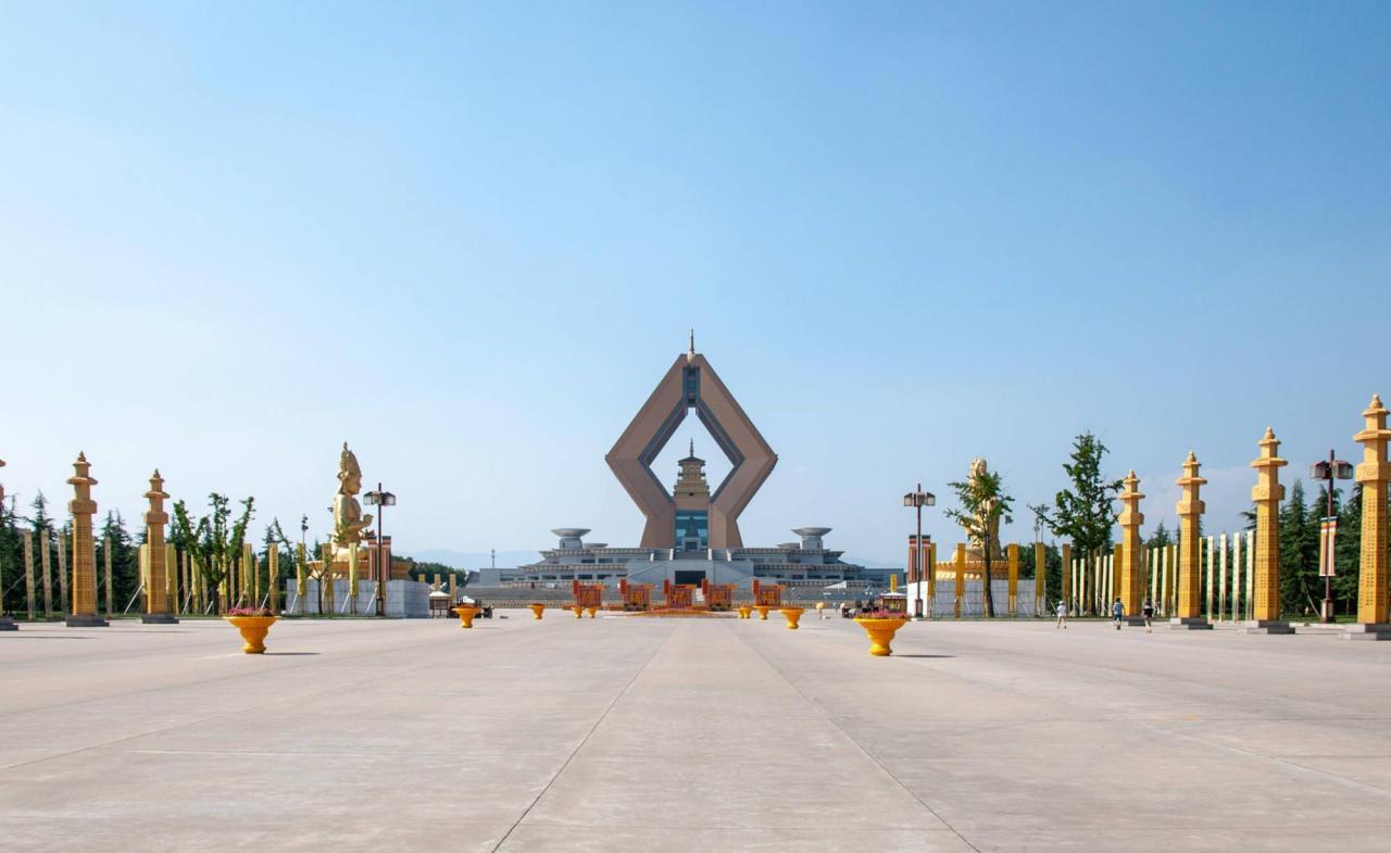 这座建筑叫做“法门寺和石舍利塔”,是整个景区的精华所在。整整50层的建筑,据说造价超过50亿,内外金碧辉煌。