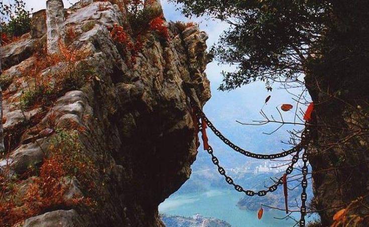 村名杨平。如果住在上面的人要下山,他们在悬崖上打了一排小洞,小洞里只能放一个。人有一只脚,所以踩坑不能出错,否则进退两难,上不去,下不下去,所以上悬崖一定要喊,而且在上悬崖的过程中,你也必须大声说话。大声喊叫以防止上升和下降碰撞。后来,清朝商人投资修建了一条铁链,成为奇观,吸引了来来往往的游客,节假日更是人山人海。