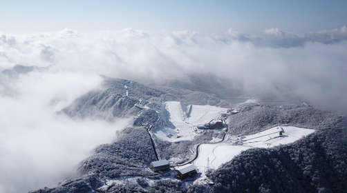 云上草原星空滑雪场坐落于浙北第二高峰,位于湖州安吉。这里的年平均最低气温差不多是在-10℃,积雪期从12月延续至次年3月,降雪厚度最高80公分,是数一数二的高山天然滑雪场。