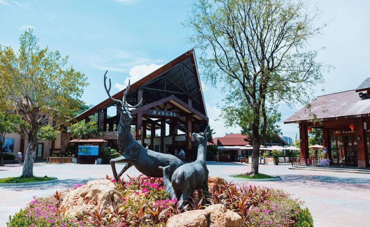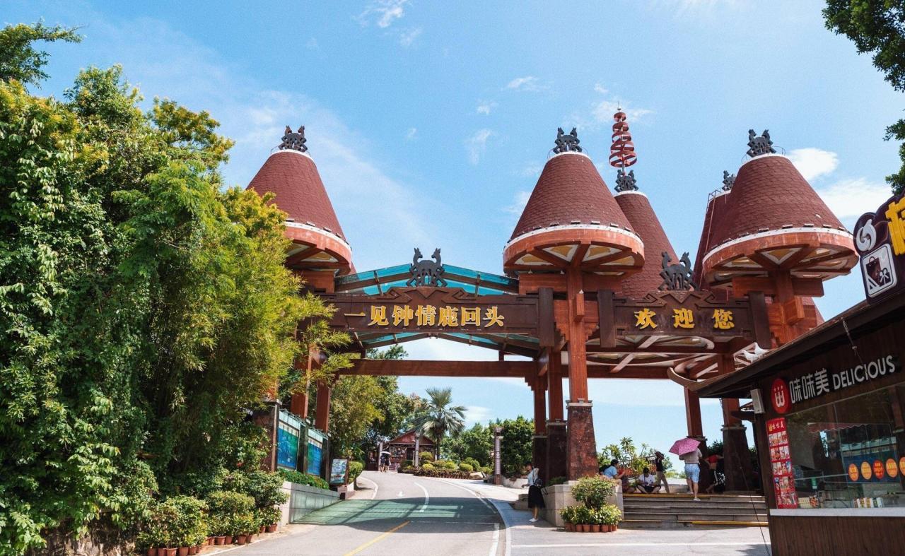 看到这座悬挂有“一见钟情鹿回头”匾额的门头即真正到达了景区,观光车也是停靠在这座山门前的广场内,建筑为典型的黎族风,鹿回头也是一座与黎族美丽爱情传说有密切关联的公园,因此它也是一座以“情爱文化”为主题的公园,尤其深厚情侣的喜爱与欢迎,素有“南海情山”的美誉。