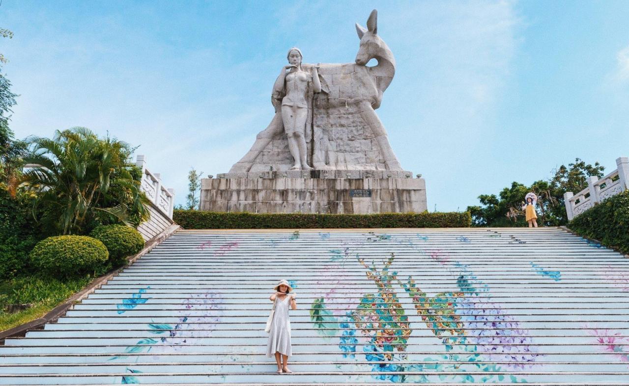 鹿回头公园的核心景点是这座雕塑,叫“鹿回头雕塑”,整座雕塑高15米,耸立在鹿回头公园五岭的最高峰处,是根据黎族爱情传说创作而成。据悉,这是三亚市海拔最高的雕塑,同时也是三亚别称“鹿城”的由来,至于它所表达的爱情故事,建议身临其境去感受。