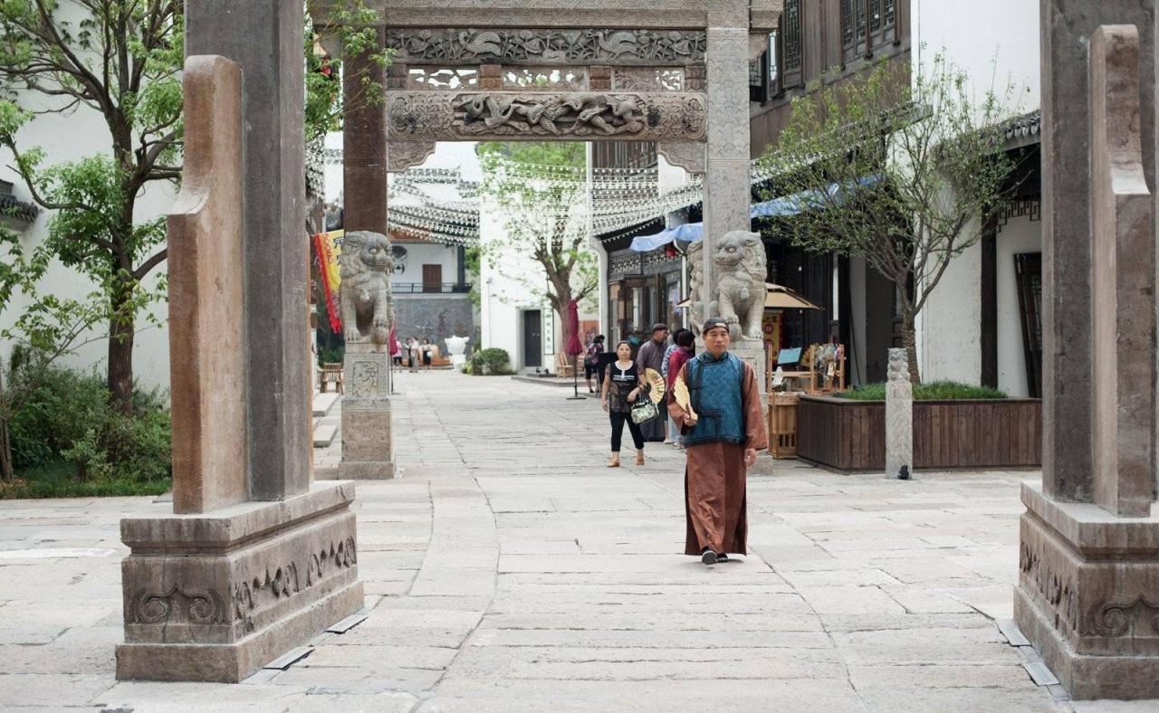 整座文渊狮城复原了古时狮城最繁华热闹的北大街、东大街,像之前的一些古牌坊也都复建了,比如功德牌坊、贞节牌坊等一共有7座,坐落在长666米的北大街上,再现了昔日古城狮城的繁荣景象,置身其中,给人一种穿越时空的错觉。