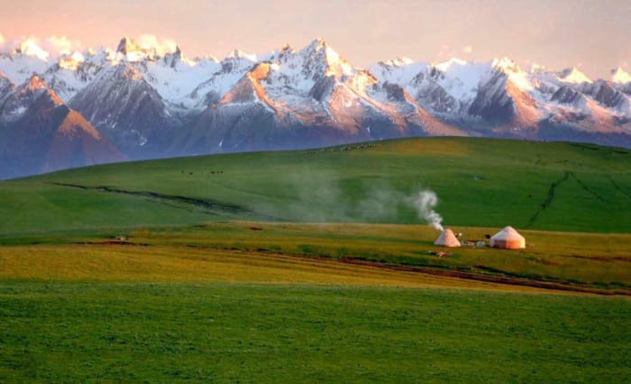 翻山越岭进入琼库什台村,体验哈萨克的人文风情,看青山绿水环绕、莺飞草长,想必爱的人也在路上。