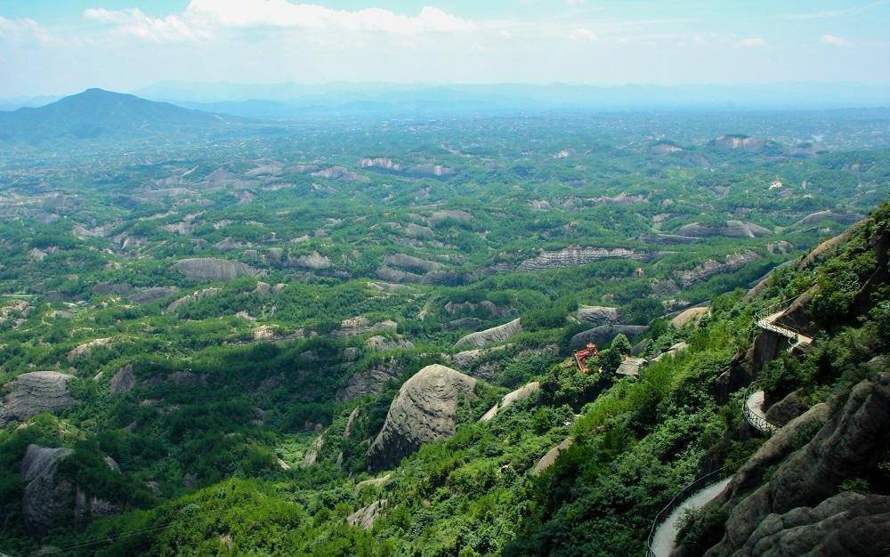 牛头接近凤凰山脚,形成了峡谷北高南低的开阔坡地。在坡地北边的高坡上,散落许多花岗岩巨石,远看就像那喂老牛的千年草垛。当你一旦走入巨石之间,就会不由自主地遐思万千,流连忘返。石牛寨内主要以丹霞地貌景观为主,这是国内所发现的规模最大的白色丹霞地貌群落哦~以“十里绝壁、百里丹霞”为典型代表。