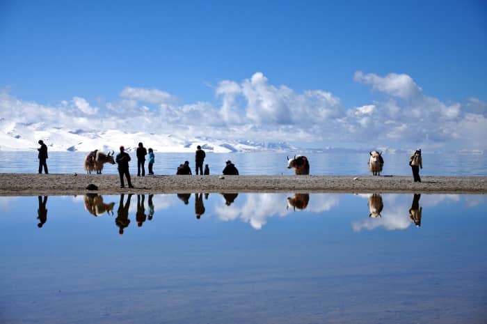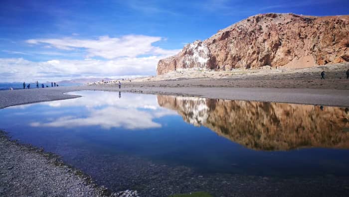 其中,一定不可错过的是这座需要下车徒步攀登的小山哦,登上这座小山需要花点时间与力气,不是因为它很高,而是因为在这里的海拔约4800米,在它的顶上可以俯瞰这个世界上最美的内陆湖,不信的话你们来感受一下。