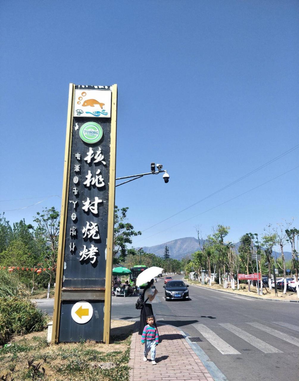 【核桃村】 这里是湿地梦寻花海的入口,目前环湖公交106线的最点站。右手边修建了不少的安置房,开了不少的民宿和客栈,还有一个康养中心。因实施了交通管制车辆不能继续前行,所以很是热闹,烧烤、小吃已经形成了产业,特别是节假日生意火爆。湖边上有一个砂砾石场所,带孩子来游玩的比较多。